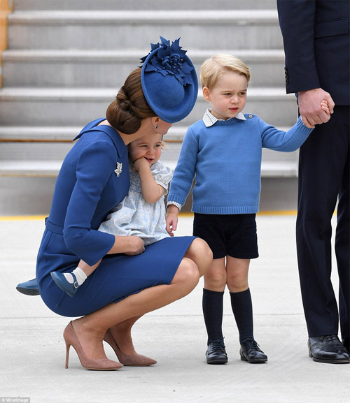 Hoàng tử bé nước Anh Geogre lại chứng minh sức hút thời trang của mình khi cùng bố mẹ tới thăm Canada vào đầu tuần này. Loạt ảnh Geogre mặc trang phục tông xanh gồm áo len, áo sơ mi, giày cùng tất dài, phối hợp đồng điệu cùng trang phục của bố mẹ và tiểu công chúa khiến công chúng "phát cuồng" vì quá dễ thương.